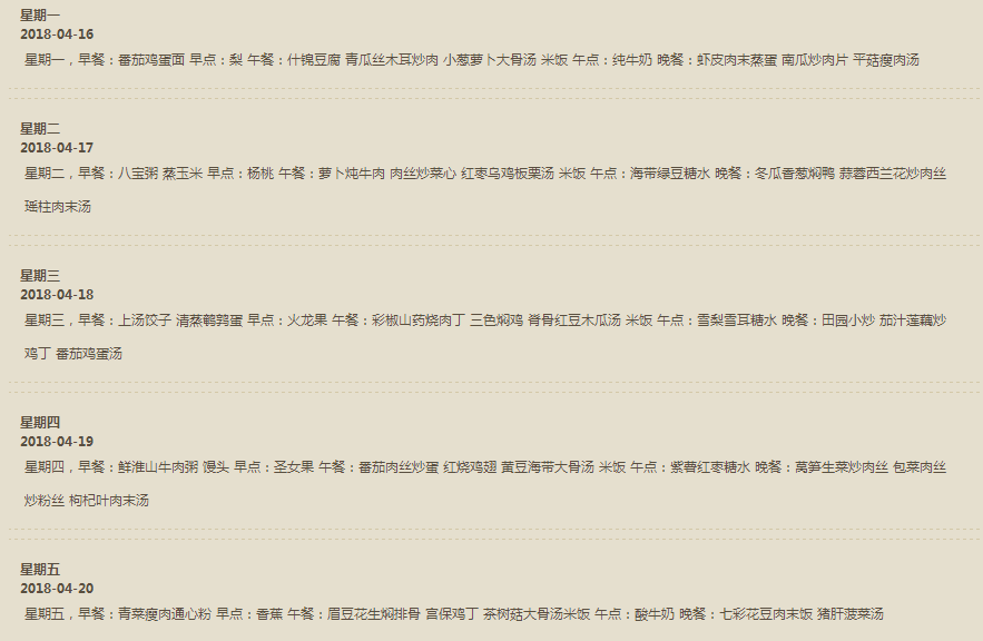 乐恩幼儿园2018.4.16-4.20一周食谱