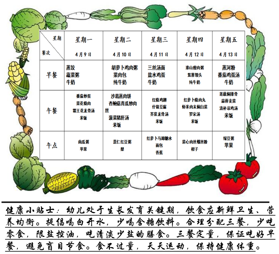 特蕾新裕锦幼儿园第七周幼儿食谱