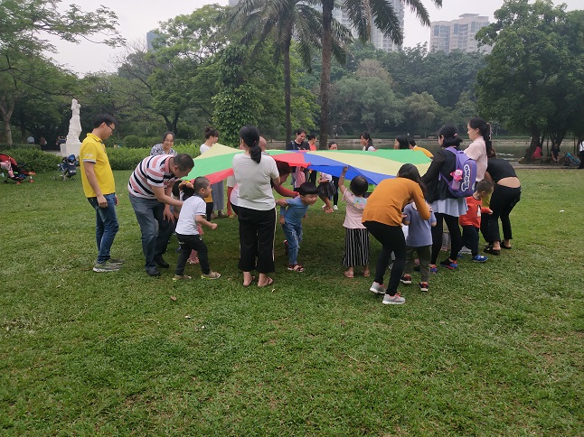 4月28日,我园组织全园幼儿和家长一起去洪湖公园举行亲子户外活动。这天早上9点在幼儿园门口集合,小朋友和家长一起走路去洪湖公园,一路上小朋友和家长们怀着无比激动的心情,高高兴兴的向洪湖公园出发,9:30老师和其他的家长带着小朋友陆陆续续的来到了集合地点。 活动开始了,首先老师和家长、小朋友一起做律动。看着孩子们做的那认真劲,在看看孩子们脸上灿烂的笑容,我们家长都会心地笑了。接着家长带着宝宝们一起做起游戏、画风车,大家个个玩得兴高采烈。这次的亲子活动举办得很成功,不只是孩子们玩得开心,家长也在这游戏中和歌声中重温童年。