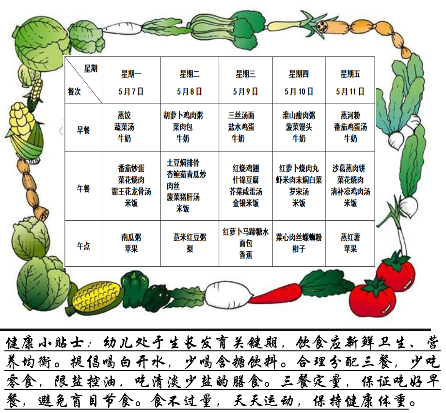 特蕾新裕锦幼儿园第十一周幼儿食谱