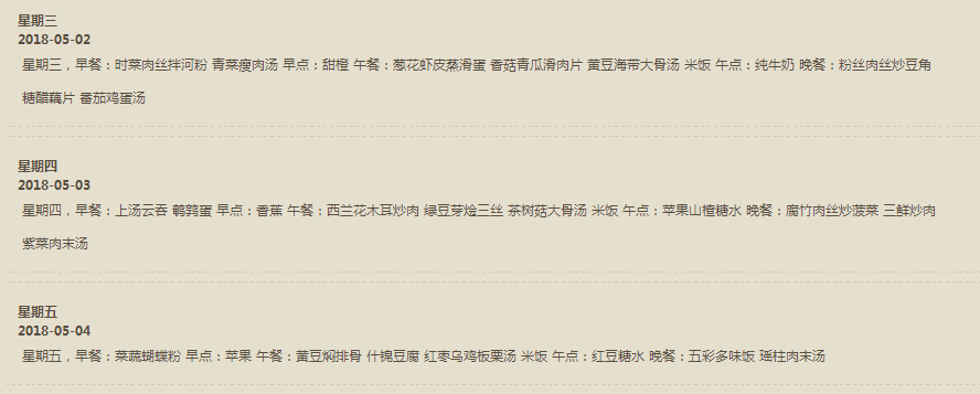 每周食谱