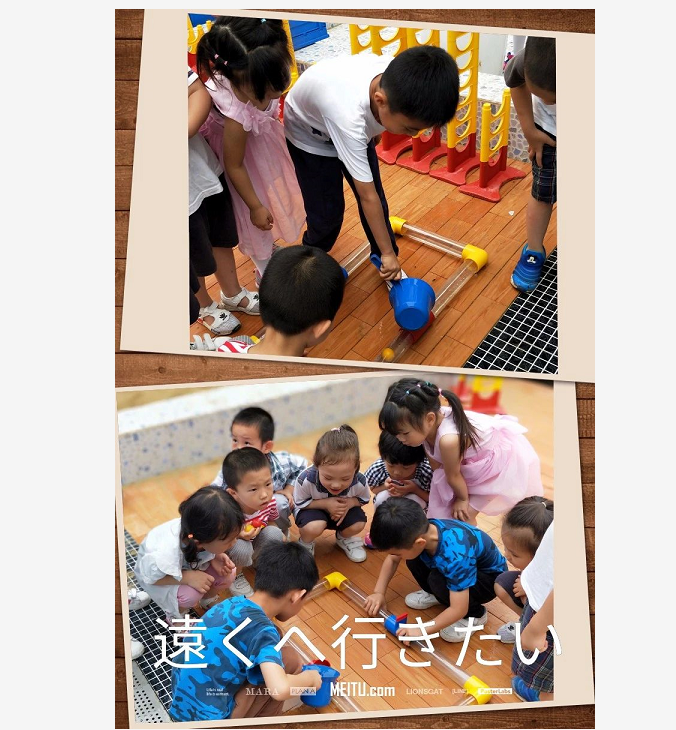 一声哨想,原来是户外时间结束了,我们要收拾整理玩具了。带着不舍的心情我们快速还愿沙水乐园本有的面貌,这一次时间过得真快,细想:我好像这中间明白了分工合作,队长的职责,清楚了团体中沟通交流的重要性。
