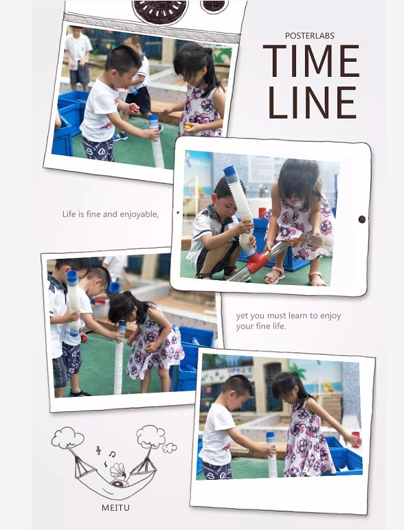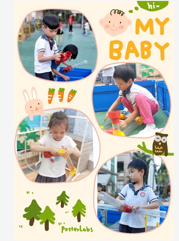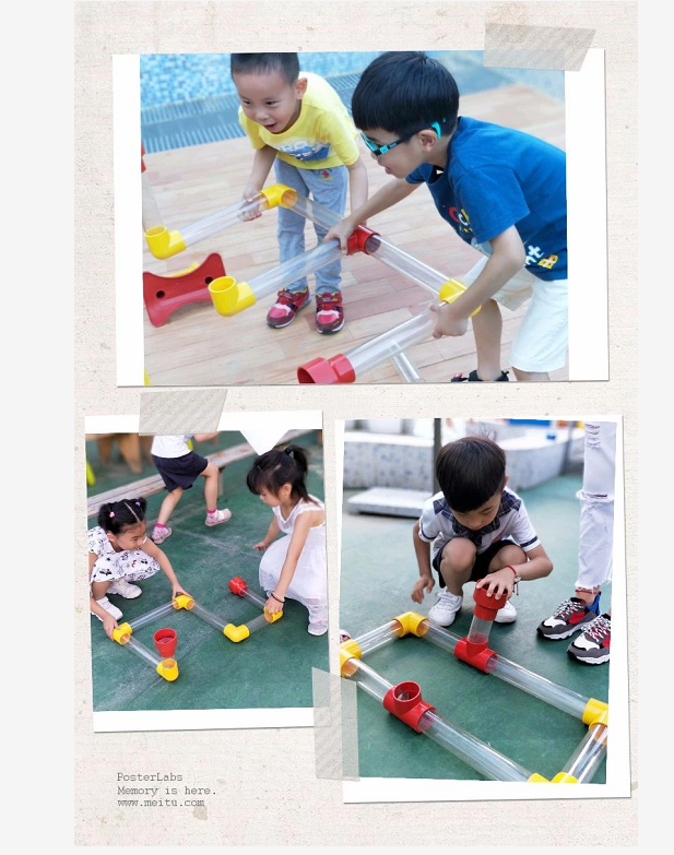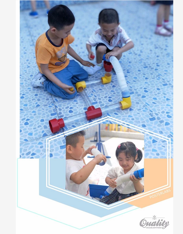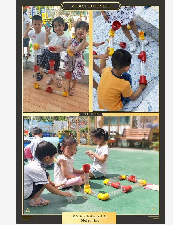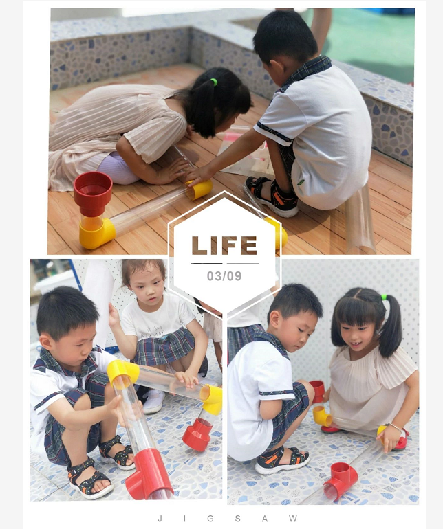 剖面直管无缝连接探究水的流动真的废了不少劲儿呢!同高度的两直管连接是不会让水从上面溜走的,所以直管的摆放位置一定要一高一低。