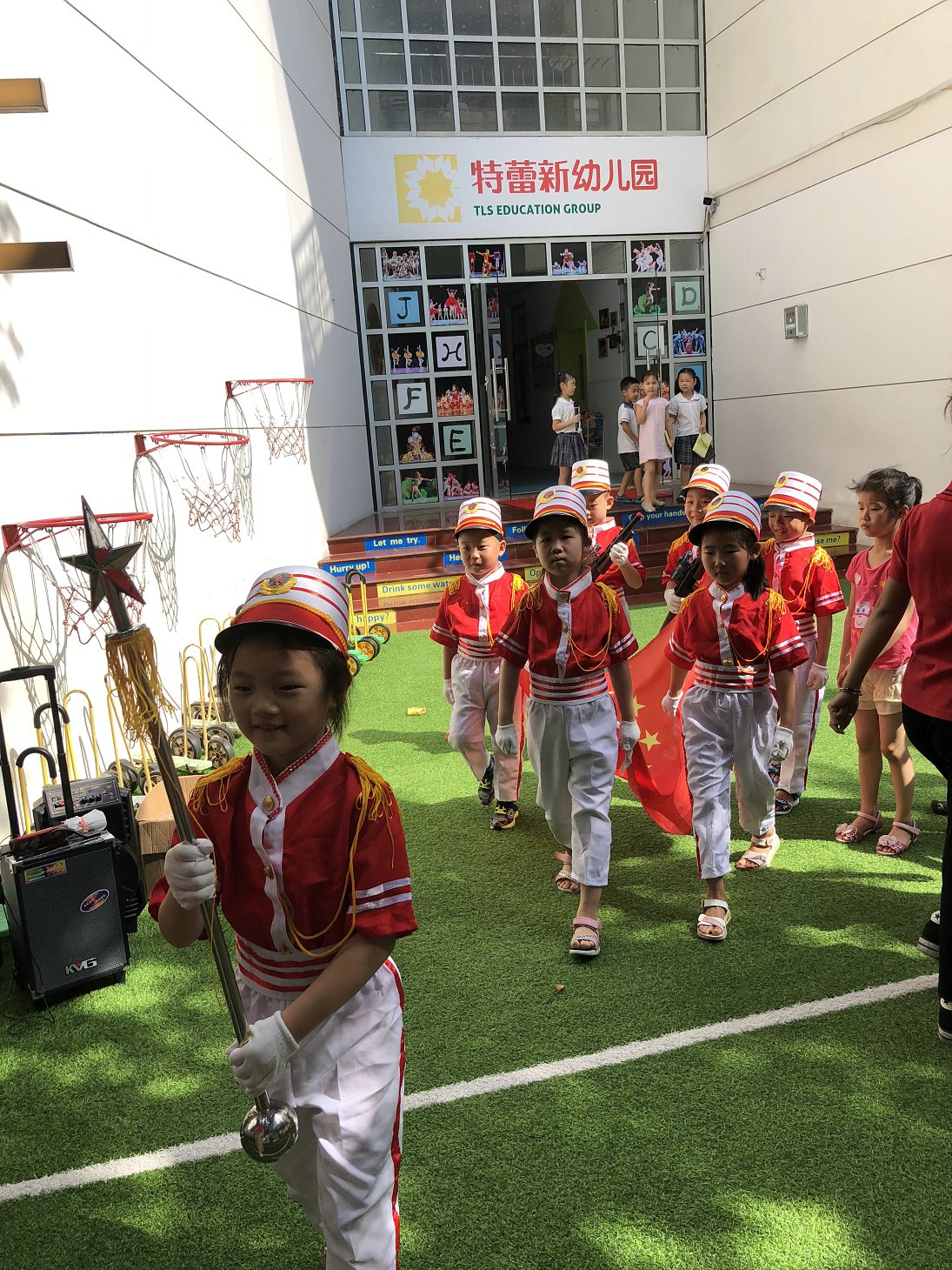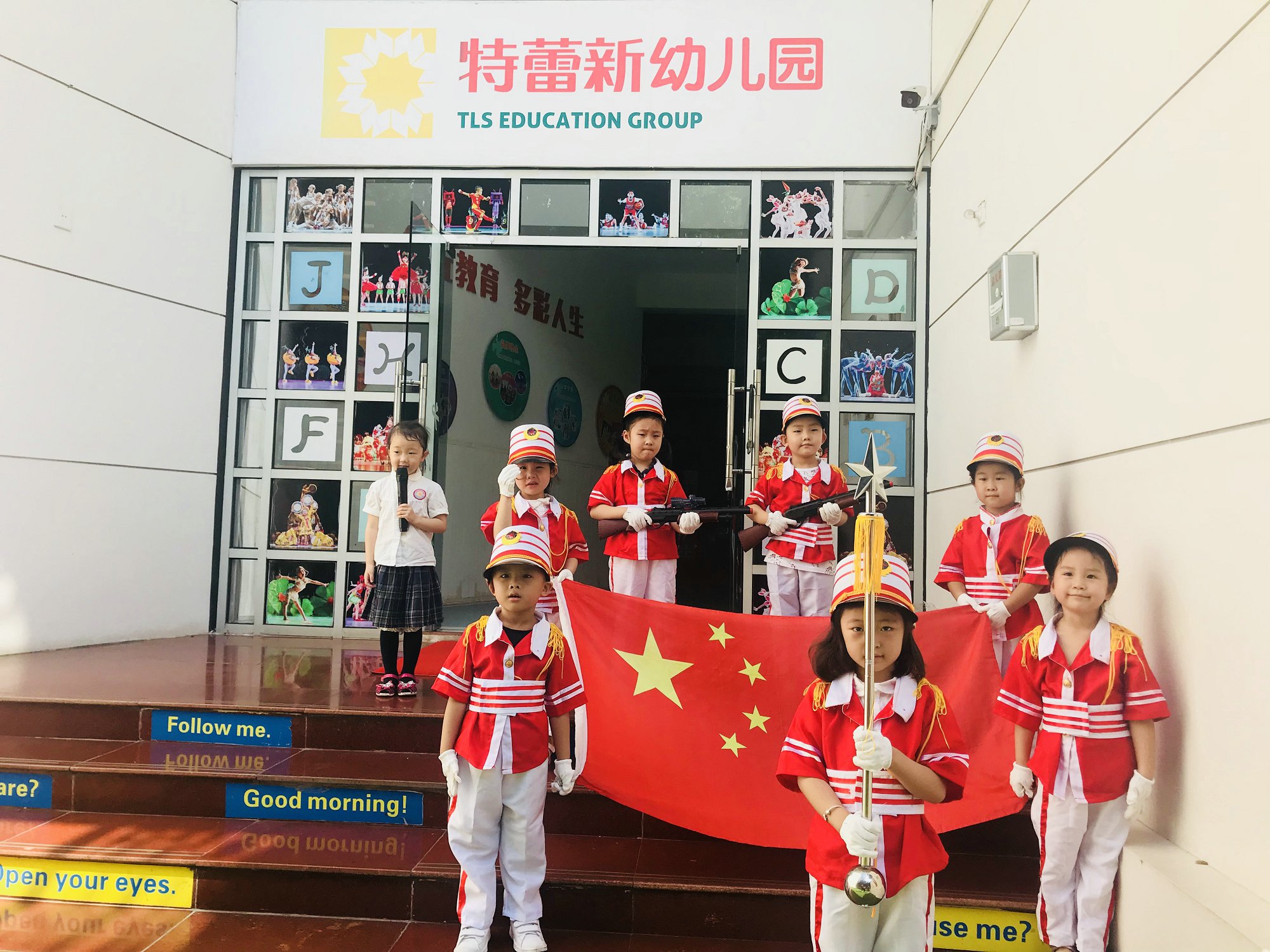 升旗仪式是幼儿园教育活动之一,也是对幼儿进行爱国主义教育的有效途径。每个星期的周一上午,是特蕾新幼儿园的升旗活动时间。采取年级班级轮流制,以年级为单位开展,年级中以班级轮流担任升旗任务。
