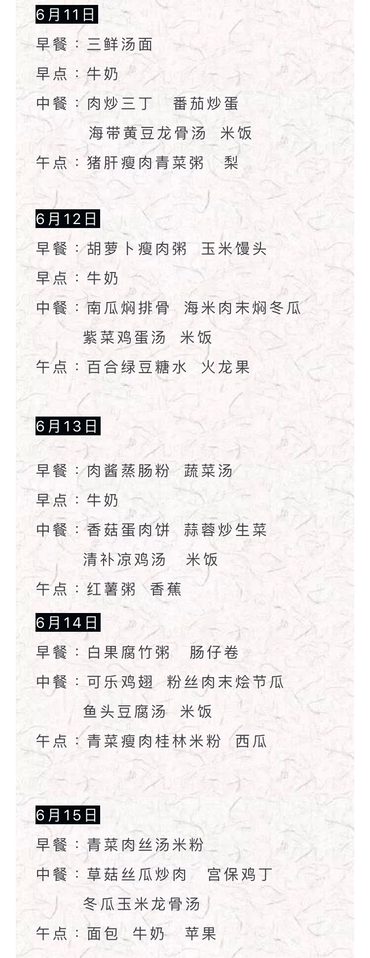 每周食谱