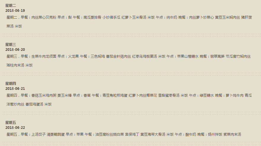乐恩幼儿园2018.6.19-6.22一周食谱