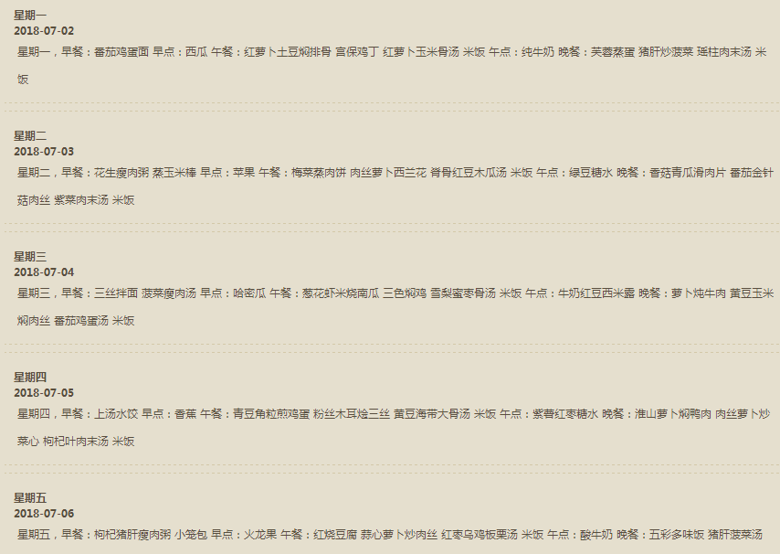 每周食谱