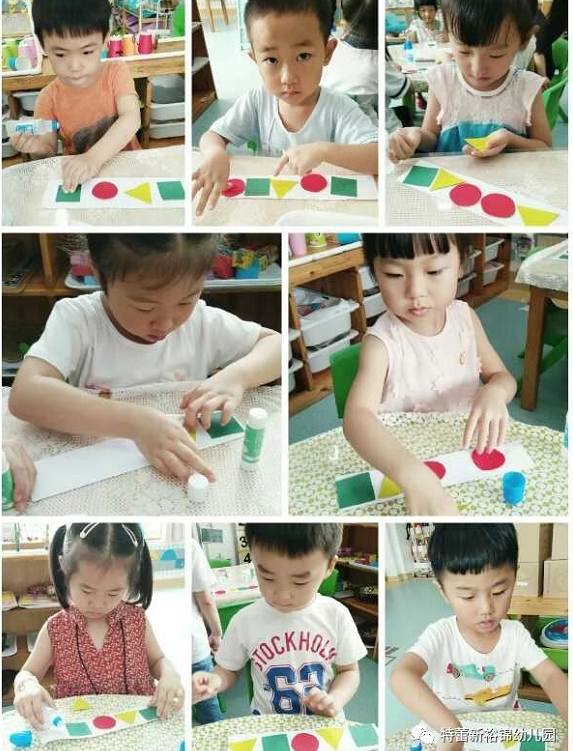 本次活动让幼儿认识了图形,也发展了幼儿的空间思维能力。通过生活中的图形激发幼儿的兴趣,从而让孩子在操作过程学习有规律地排队,锻炼幼儿的秩序感和数概念.