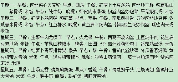 每周食谱