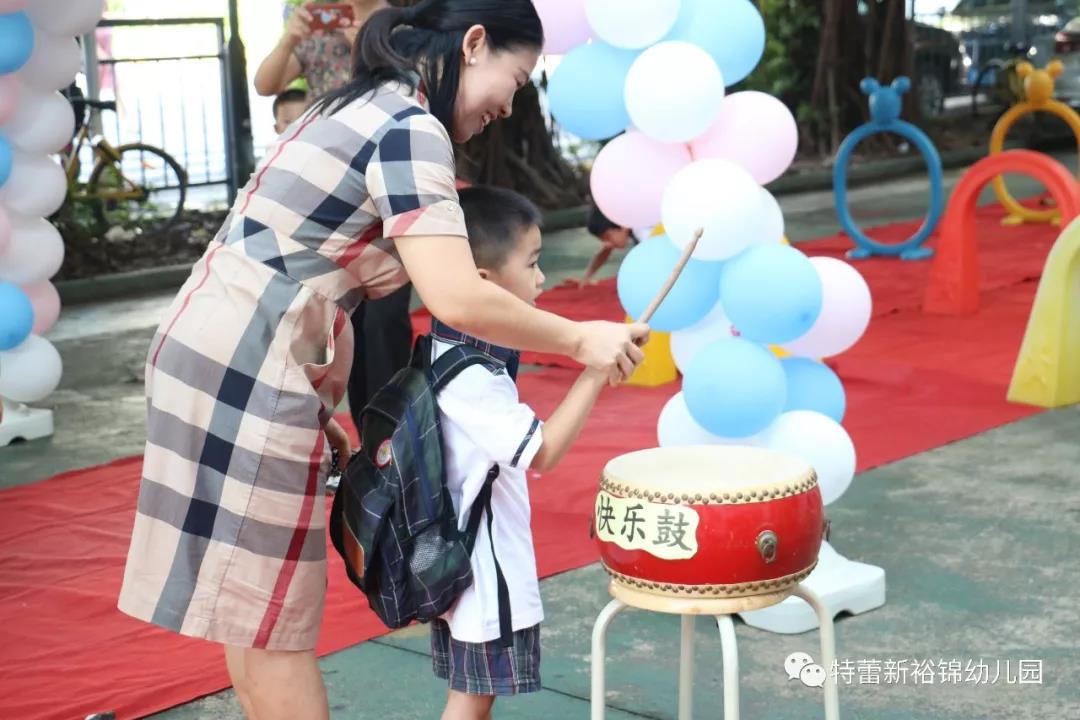 早晨,园长和老师们早早准备好,用崭新的面貌迎接小朋友们的到来。穿过色彩斑斓的气球,孩子们一个个露出了开心的笑容。他们新奇地看着幼儿园的变化,在这种欢快的氛围中接过老师们送的礼物,敲打着各种不同寓意的鼓,有节奏的跳着竹竿开心的入园,让孩子们感受到每天早上都有不一样的入园方式,对幼儿园充满了向往
