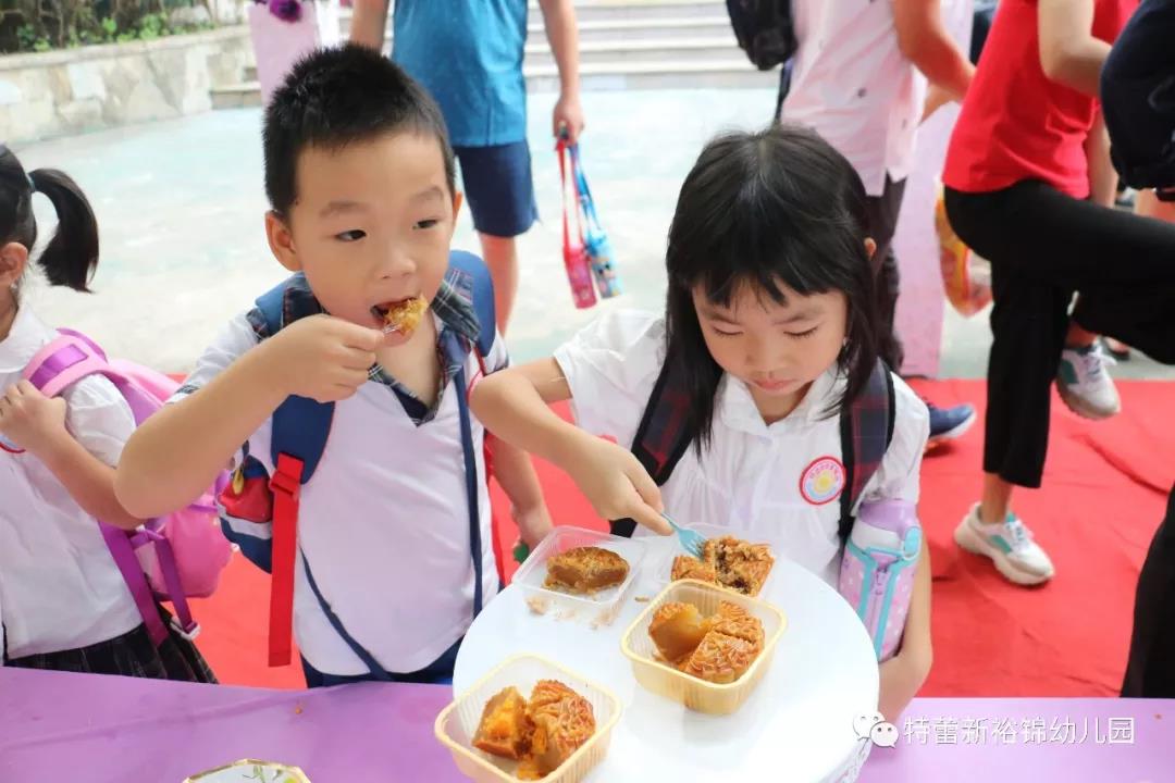 伴随着甜甜的歌曲,裕锦幼儿园的大门口开启了热闹非凡的一天!是什么事情让他们如此惊喜?又是什么好吃的让他们如此开心呢?小编此时早已按耐不住心中的小激动,迫不及待要告诉你们了! 微风吹过裕锦的校园,传来了一阵阵香味,原来是月饼的味道!一大早,老师们已布置好小点心、拍照区等着入园的宝贝了。门口的随处可见大小朋友们甜甜的笑容,他们一起品尝着甜甜的月饼,与后羿、玉兔、嫦娥姐姐一起合影,提前度过一个甜蜜的中秋,如果只是品尝月饼、拍拍照就没有活动了吗?不不不,还有更开心的是我们还邀请了爸爸妈妈跟宝贝们一起入园共度佳节呢!