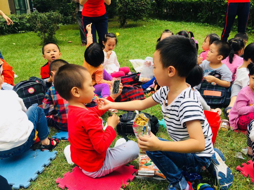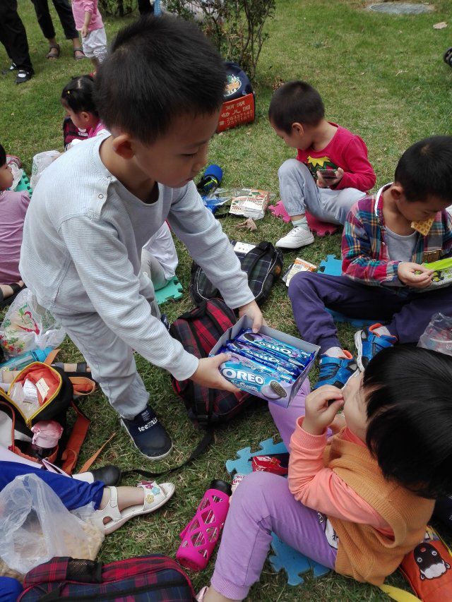 哇!还有零食分享,大家一起分享着带来的美味零食好开心呀!