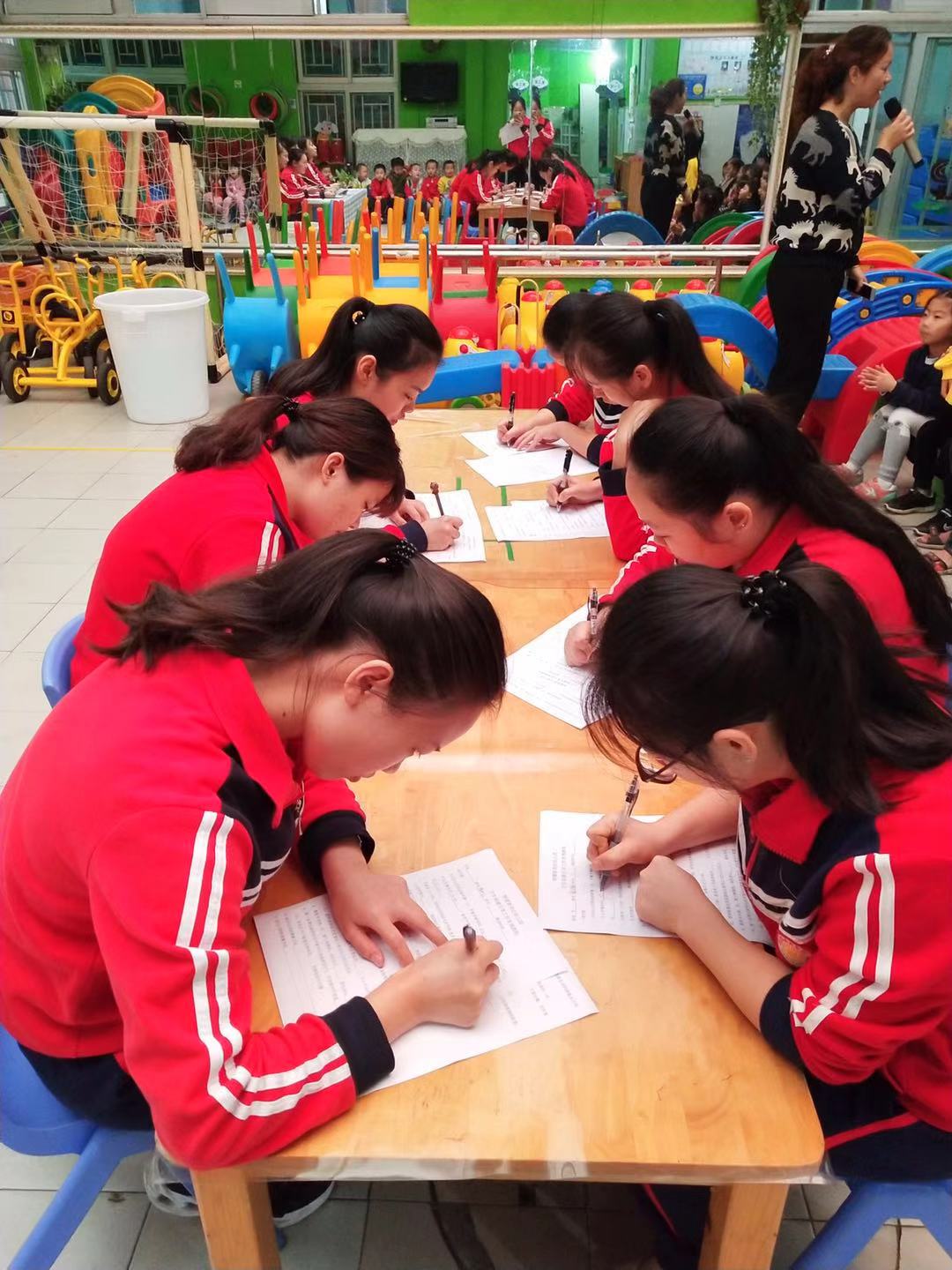 教师们准备好了比赛的物品和道具,首先主持人宣布本次比赛的目的、内容和规则,比赛就正式开始了。
