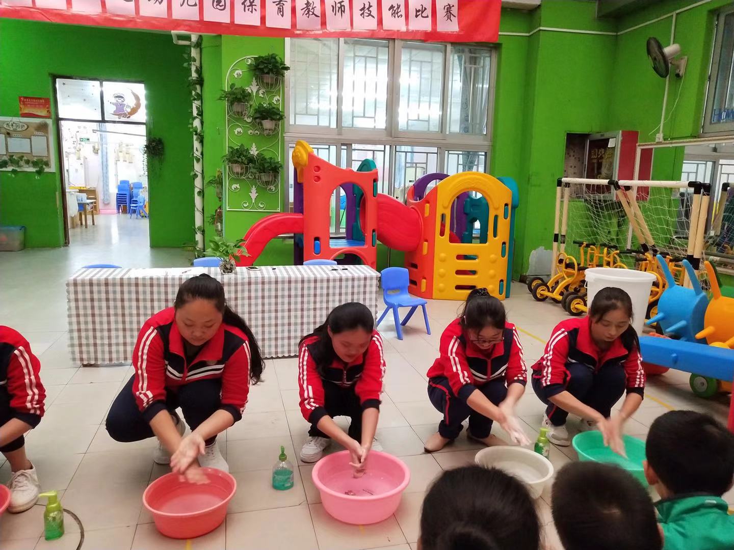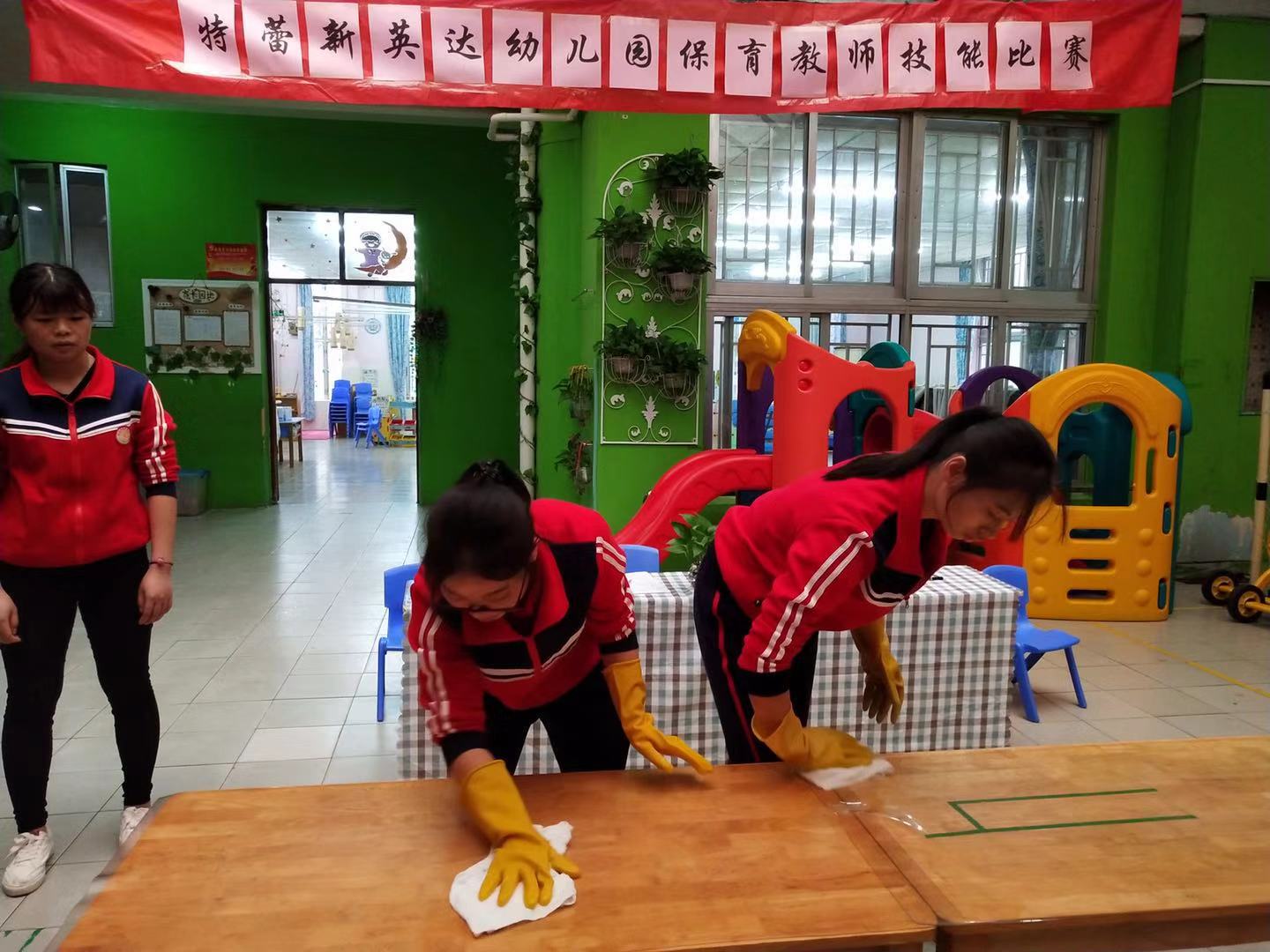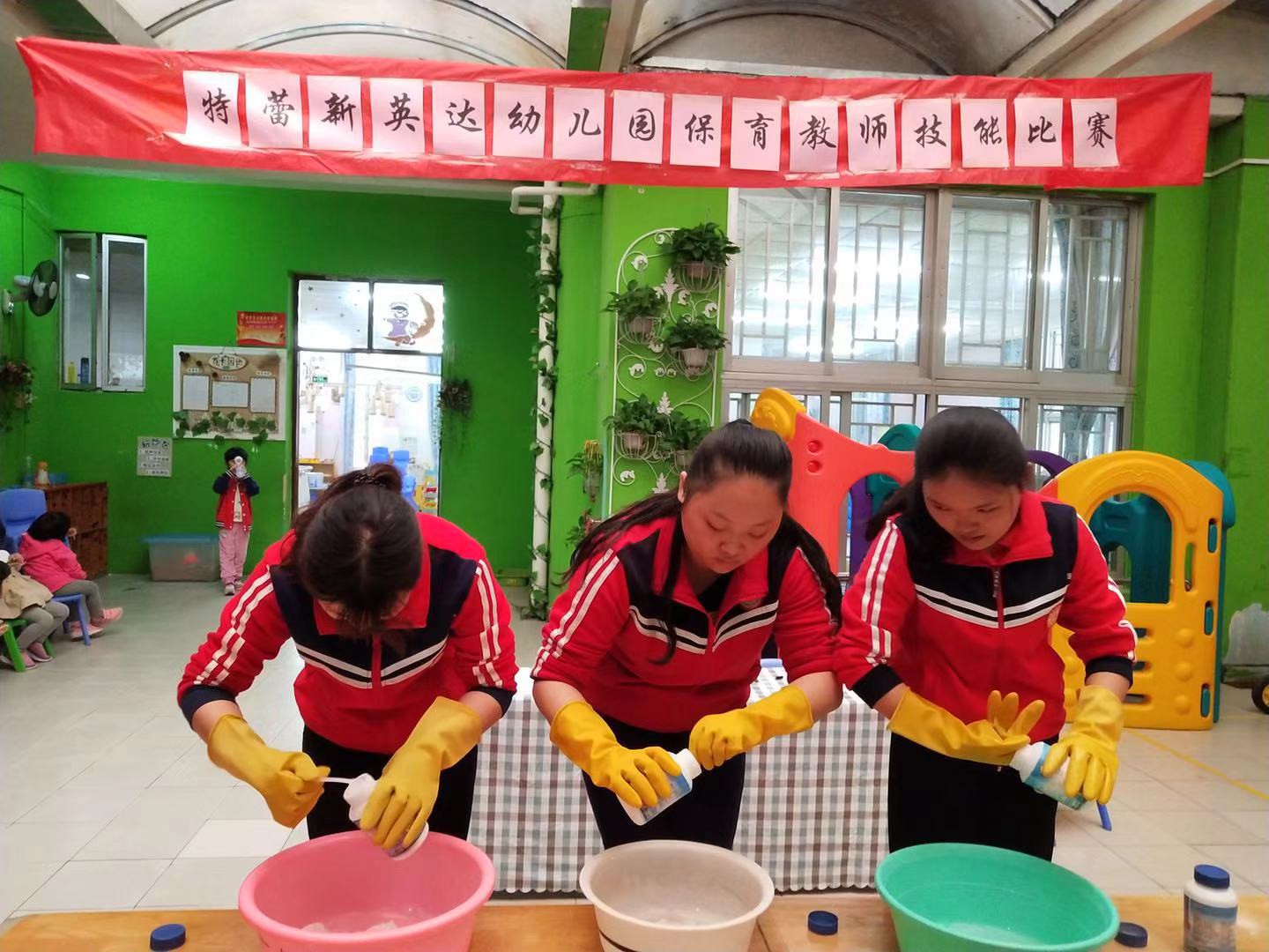 为了进一步提高教师保育工作的专业素养、对本质工作技能技巧的掌握与提高,理解保育工作专业的重要性,更好地服务家长和幼儿,我园结合幼儿园教育工作实际及保教队伍状况,根据培训活动进行技能考核。从而全面提升幼儿园的保教质量,真正体现一切为了孩子,为了一切孩子。我园在12月7日上午9点举行了教师保育技能比赛,全体幼儿观看比赛。这次比赛的项目有书面测试、削苹果、扎头发、配消毒水、擦桌子等,我们要比一比老师的工作效率、操作程序、工作效果、配教能力。