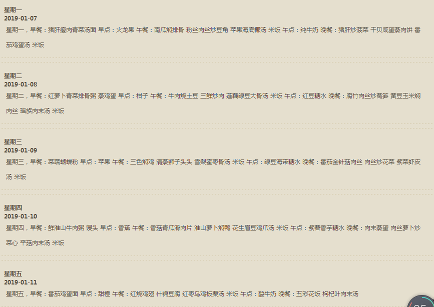 每周食谱