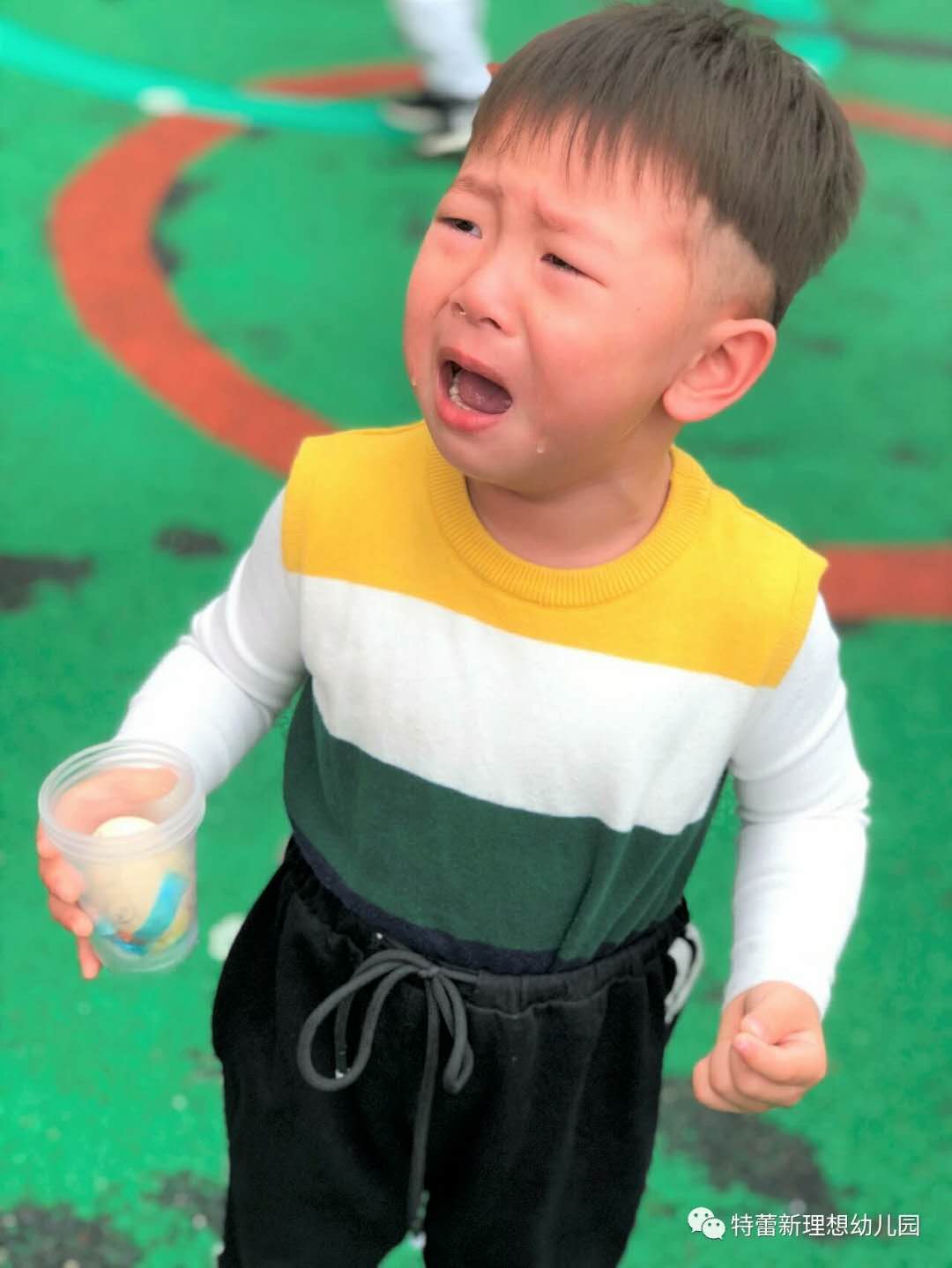 三、“伤心”篇--鸡蛋碎掉了 一部分孩子的蛋因为各种意外碎掉了,孩子们泪如雨下,泣不成声。有的尝试要捡起来,但没有成功;有的