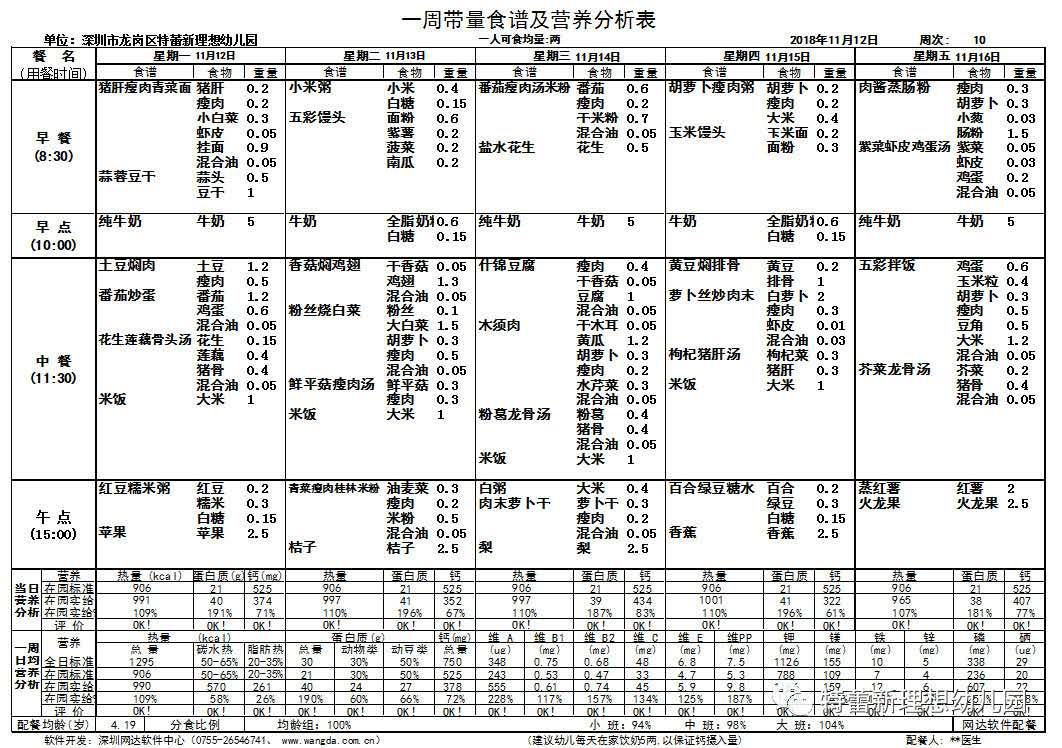 每周食谱
