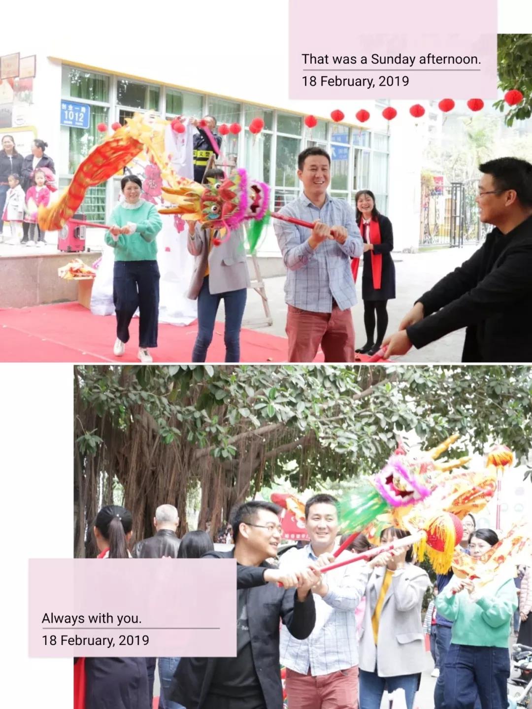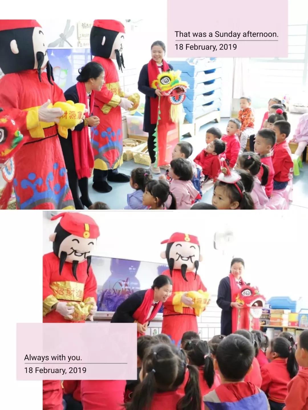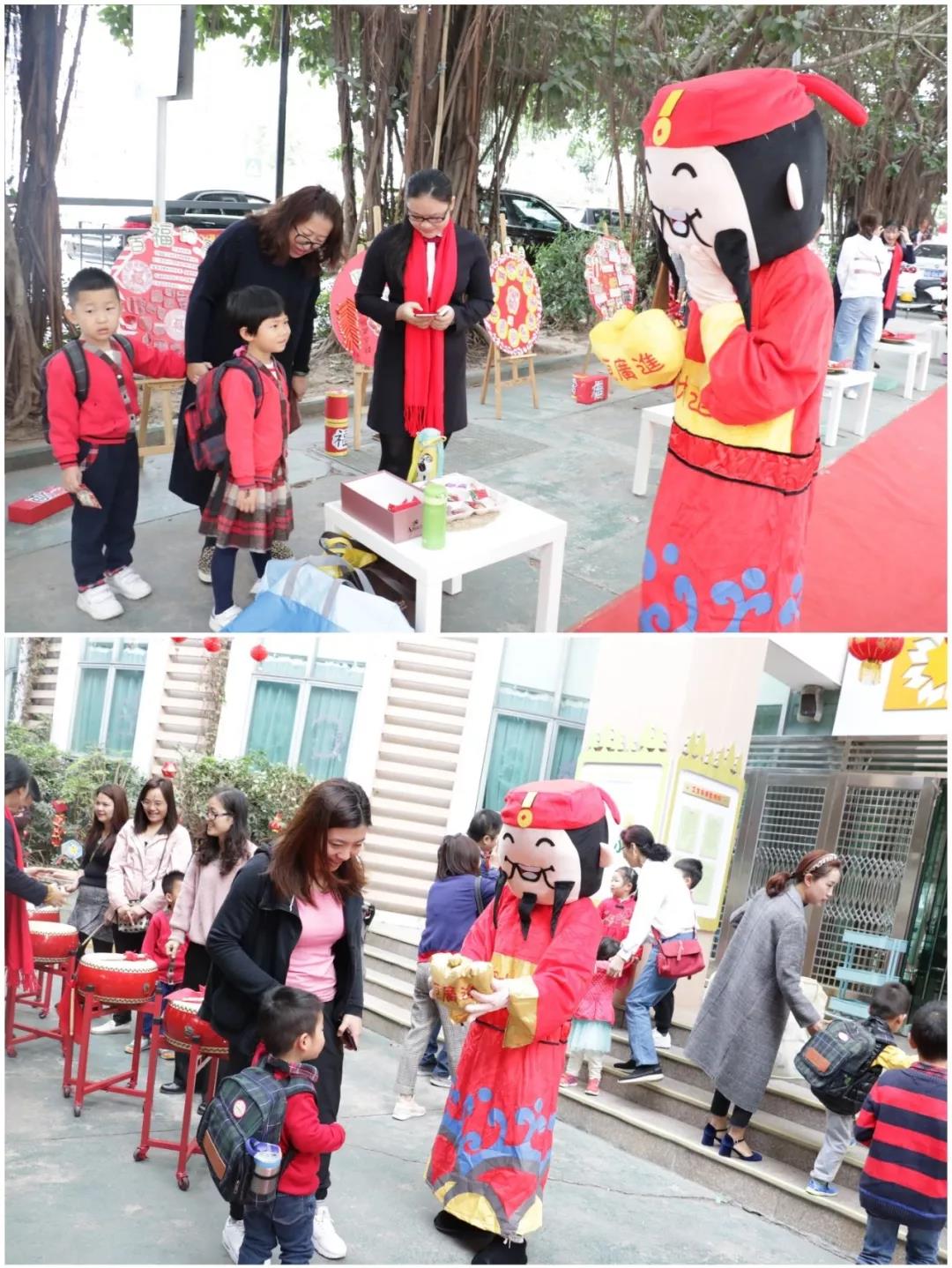 借着春节的余韵,为了让孩子们从小接受中华民族传统文化的熏陶,在新学期开学的第一天,财神爷和舞龙舞狮队现场表演,让孩子们和家长们感受节日的欢乐气氛