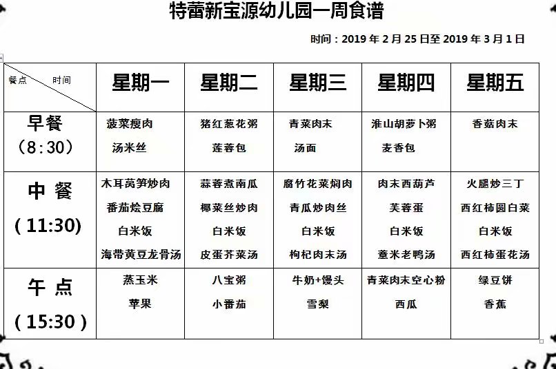 每周食谱