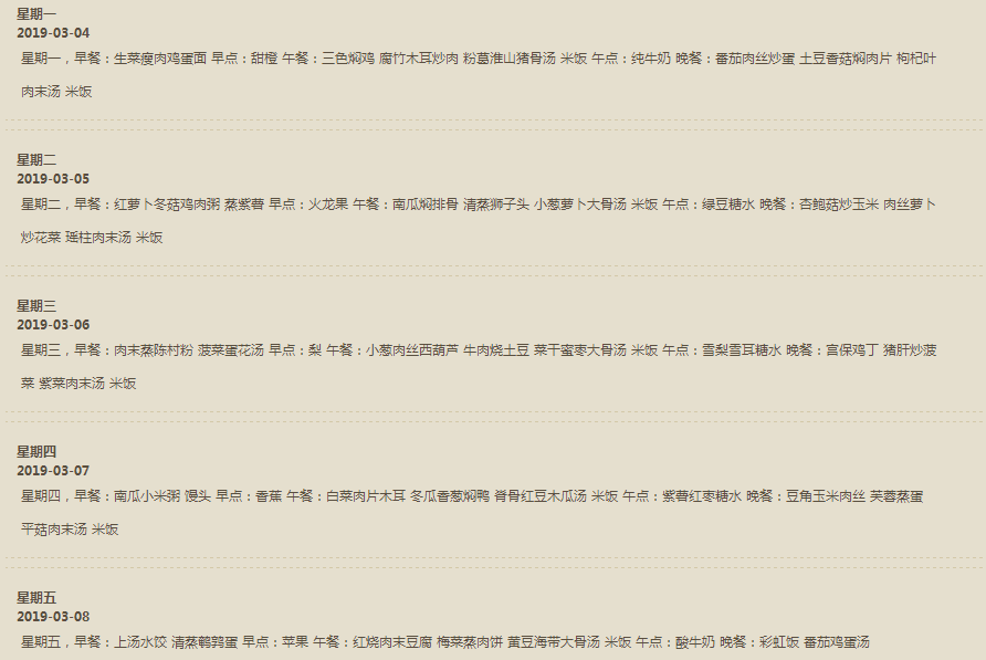 每周食谱