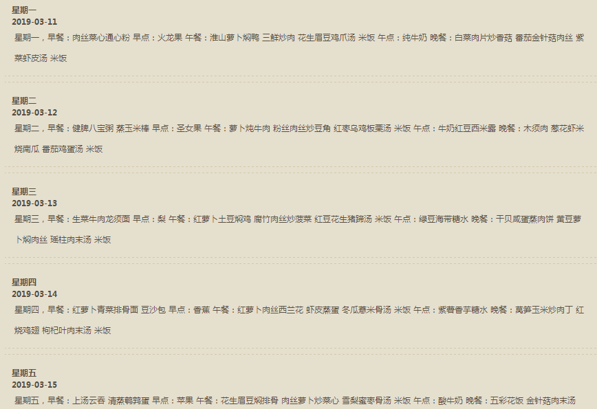 乐恩幼儿园2019.3.11-3.15一周食谱