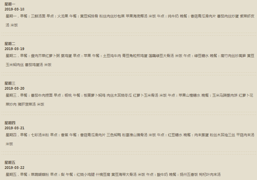 每周食谱