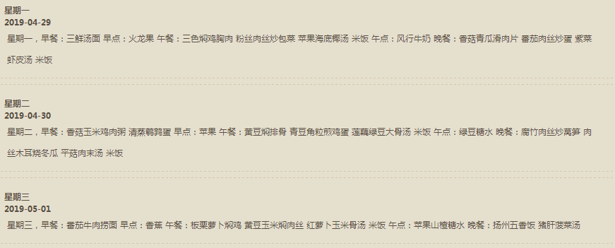 乐恩幼儿园2019.4.28-4.30一周食谱
