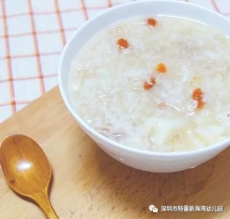 早餐:皮蛋瘦肉粥 馒头 纯牛奶 中餐:莲藕蒸肉饼 京包菜炒肉 金针菇豆腐鱼头汤 米饭 午点:香芋红薯西米糖水 香蕉