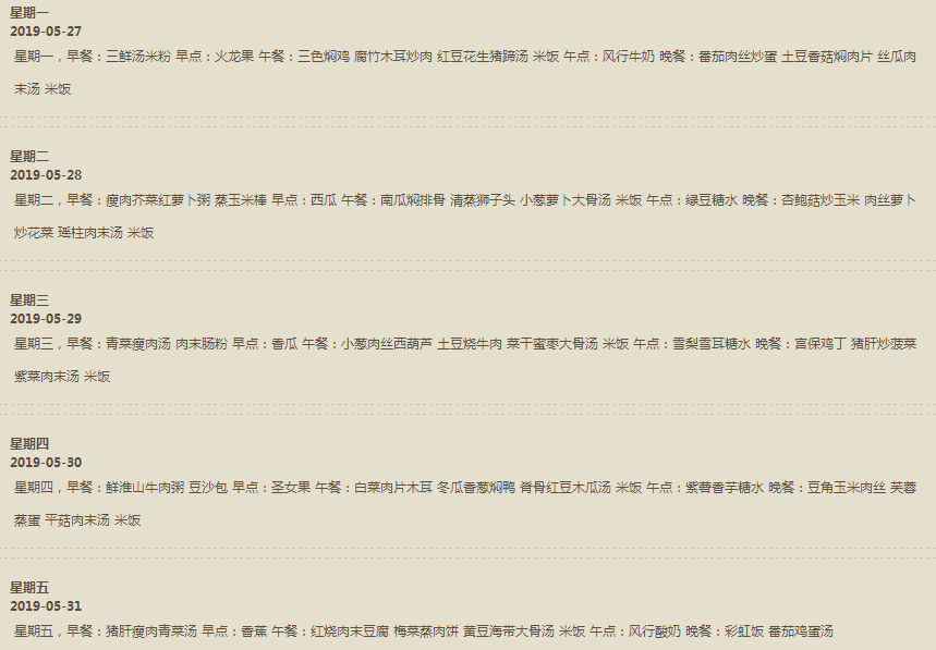 每周食谱