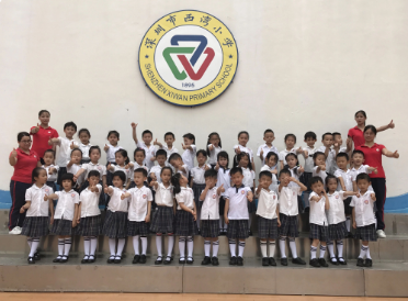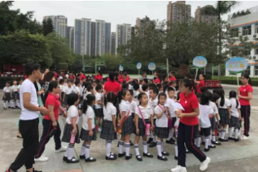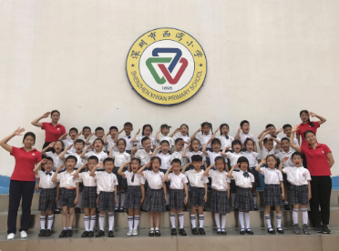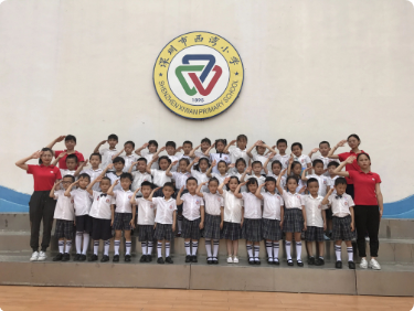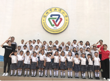 在家长义工和哥哥姐姐的带领下,孩子们游览了西湾小学。