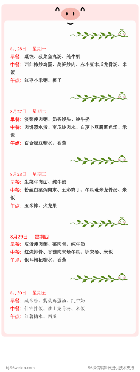 8月26日-8月30日食谱