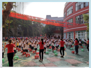 每天的早操展示中,孩子们跳出了童真、跳出了童趣,这不仅锻炼了孩子坚强的意志,还增强了幼儿的团队合作精神和集体荣誉感,同时也展示了老师和孩子们健康活泼、积极向上的精神面貌,体现出老师们在早操编排中的巧妙构思和“以儿童为本”的教育理念。