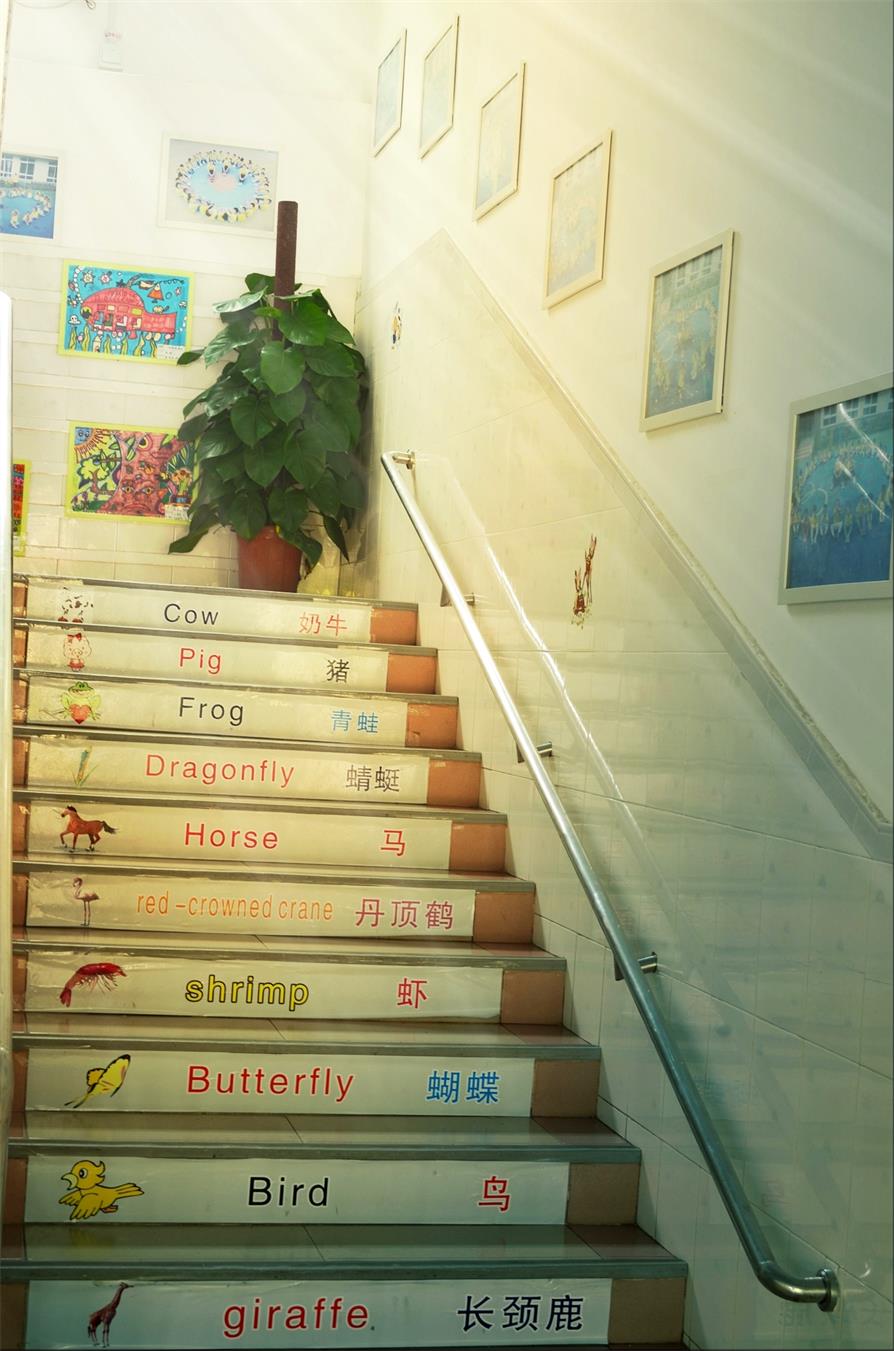 宽敞明亮的楼道,到处充满童真童趣的图画。